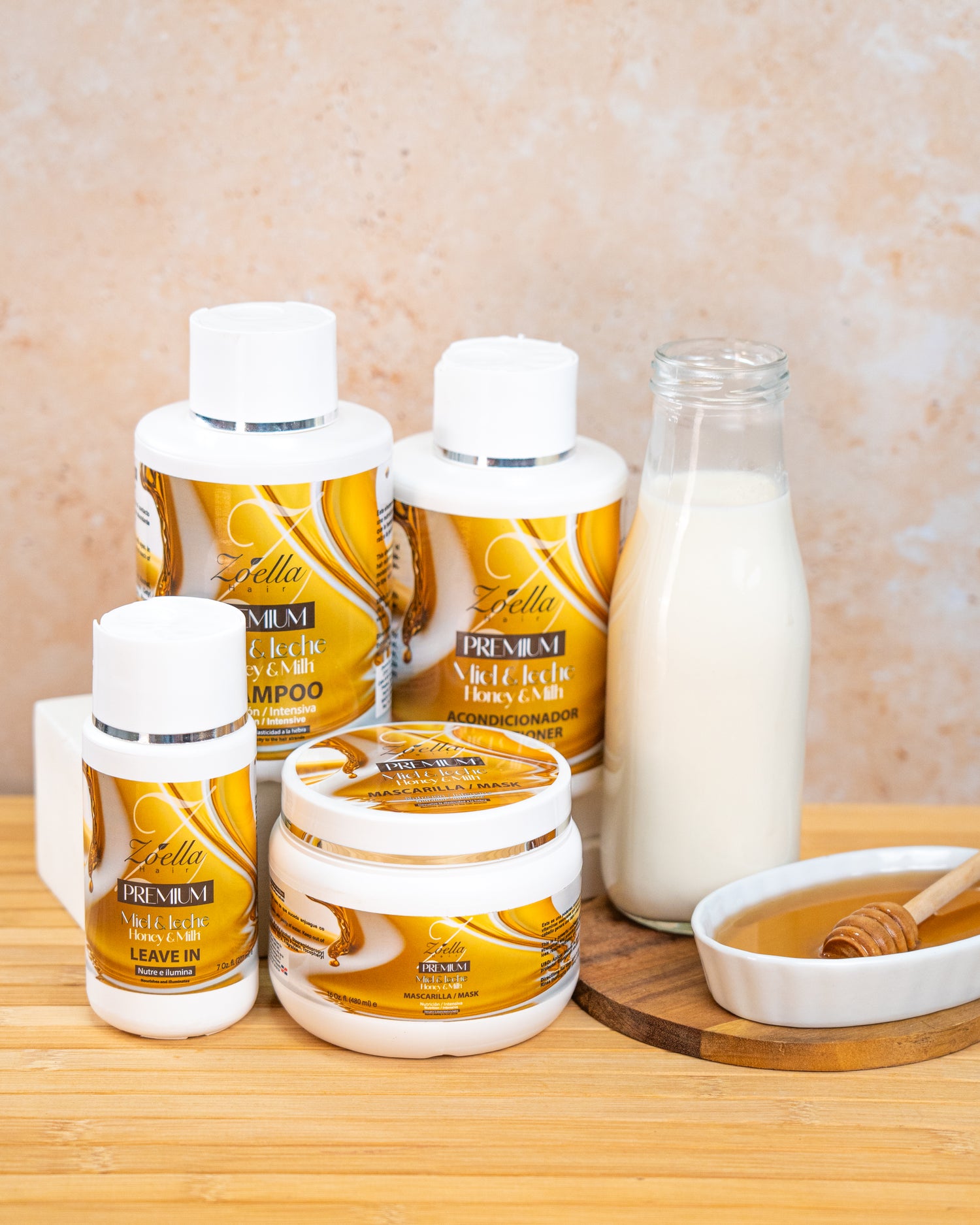 La combinación de miel y leche es el secreto perfecto para un cabello saludable, fuerte y elástico. La miel, como humectante natural, hidrata profundamente y retiene la humedad en cada hebra, mientras que la leche, rica en proteínas, repara y fortalece la fibra capilar desde adentro.